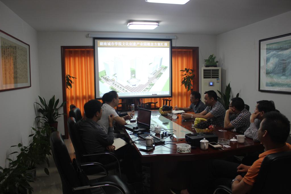 座谈会上,湖南格文置业有限公司董事长率公司总经理、财务总监对考察团的到来表示热烈的欢迎,并详细汇报了九游官方端入口文化创意产业园概念建设方案。