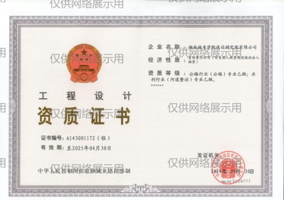 经中华人民共和国住房和城乡建设部审批,我司下属校办企业设计研究院有限公司成功获批公路行业(公路)专业乙级资质证书(临)、水利行业(河道整治)专业乙级资质证书(临)。此次资质的获得,标志着公司在水利、公路工程设计领域再获佳绩,资质体系不断完善,大幅提高该企业市场全过程综合竞争力。