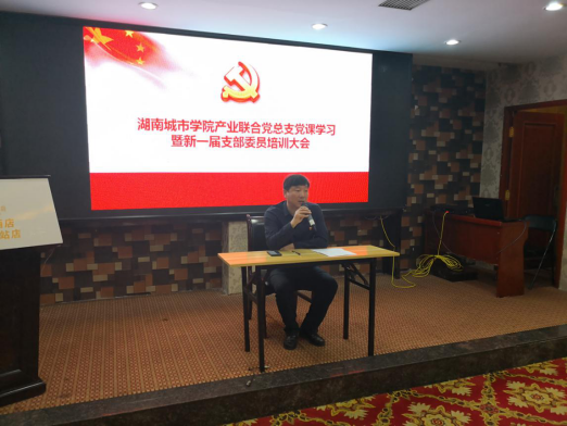 25日上午8::30在吉首酒店会议室举行了九游官方端入口产业联合党总支党课学习暨新一届支部委员培训大会。学校党委委员,副校长谭献良为全体党员上党课——“怎样抓好党建工作”,产业联合党支部书记王正安组织学习《中国共产党工作条例》,会议由产业处处长熊创贤同志主持。