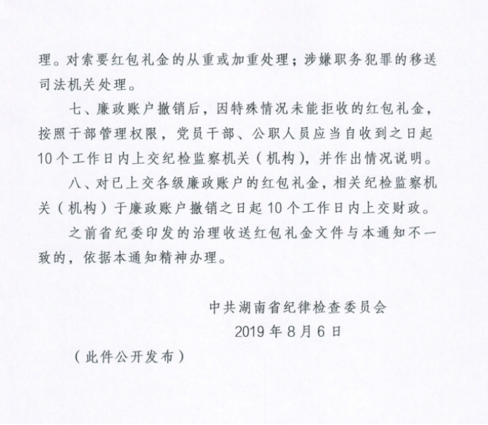 关于撤销廉政账户严禁违规收送红包礼金通知