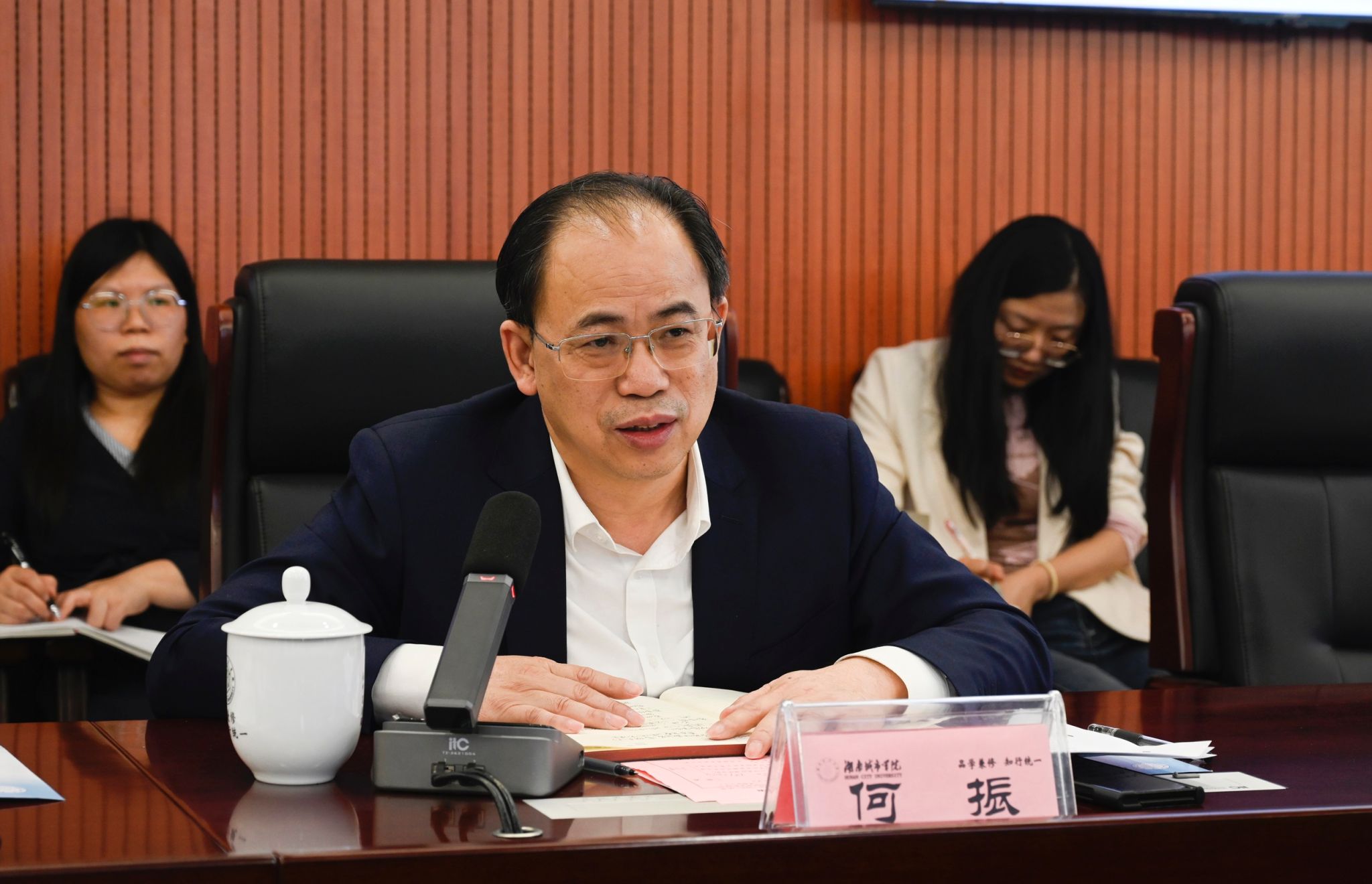 民进湖南省委会、益阳市委会有关负责同志,学校党政办、宣传统战部、人事处、科研处相关负责人及部分民进会员参加会议。