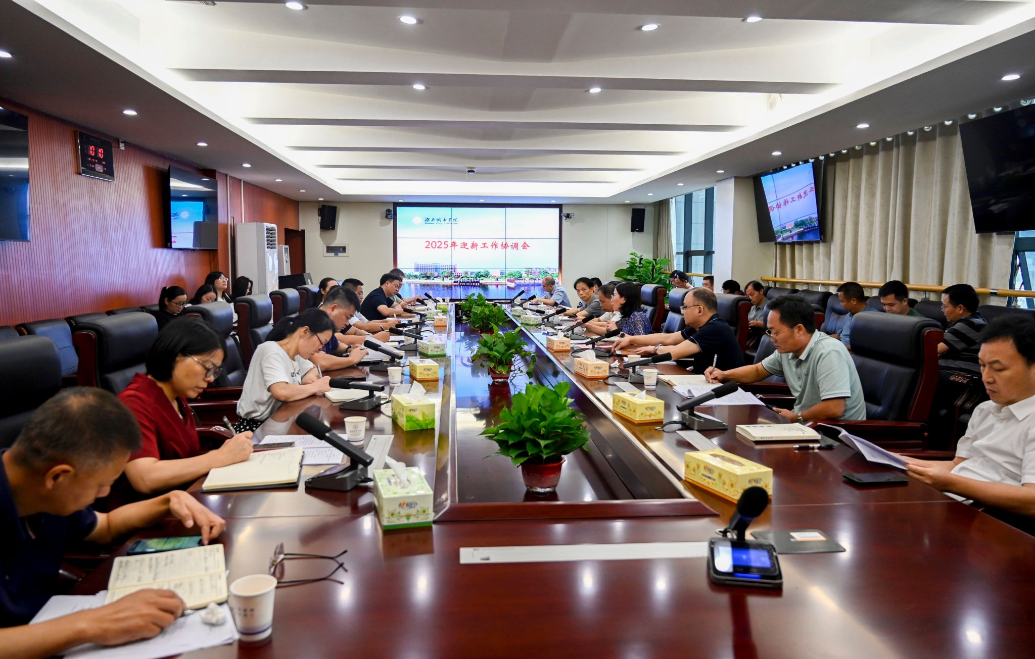 会上,学生工作部负责人详细介绍了学校2025年迎新工作方案,明确了各职能部门、二级学院的分工与职责。与会人员就迎新工作安排和注意事项进行了讨论交流。