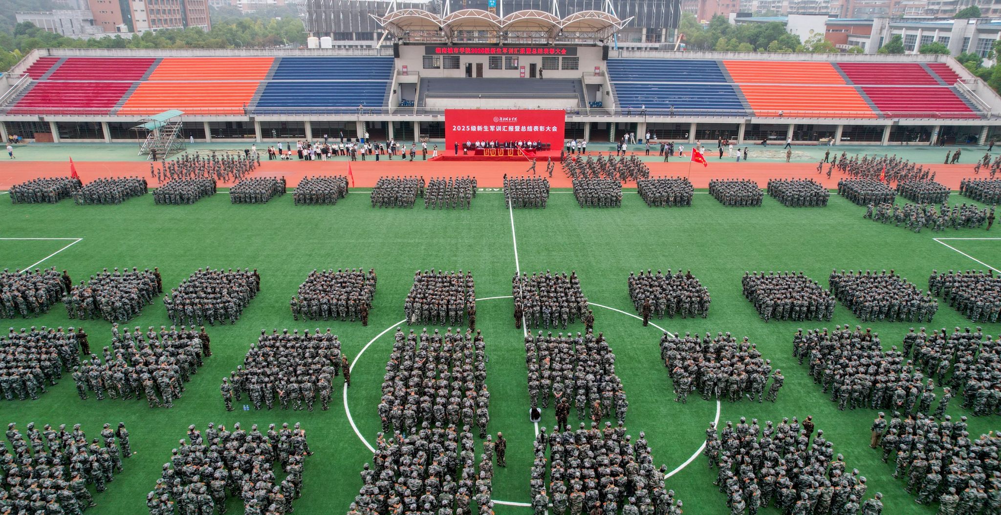 本网讯 9月30日上午8时,九游官方端入口2025级新生军训汇报暨总结表彰大会在学校东田径场举行。全场新生身着全套迷彩,以最昂扬的精神面貌迎接来自各方的检验。全体在家校领导出席大会。校党委书记何振宣布军训成果汇报表演正式开始,副校长雷存喜主持大会。