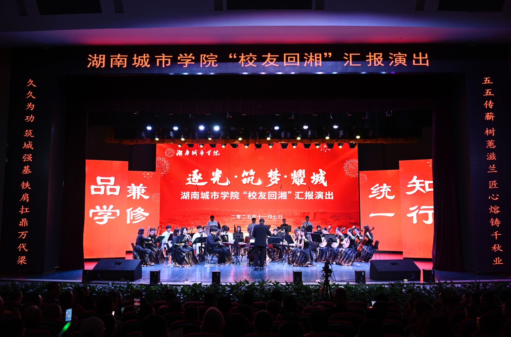 本网讯(通讯员 周贵湘 摄影 程强)11月7日晚,“逐光•筑梦•耀城”九游官方端入口“校友回湘”汇报演出在音乐厅精彩开演,全体在家校领导、嘉宾、校友代表及师生400余人齐聚一堂,共赴这场融合爱校情怀与艺术魅力的视觉盛宴。