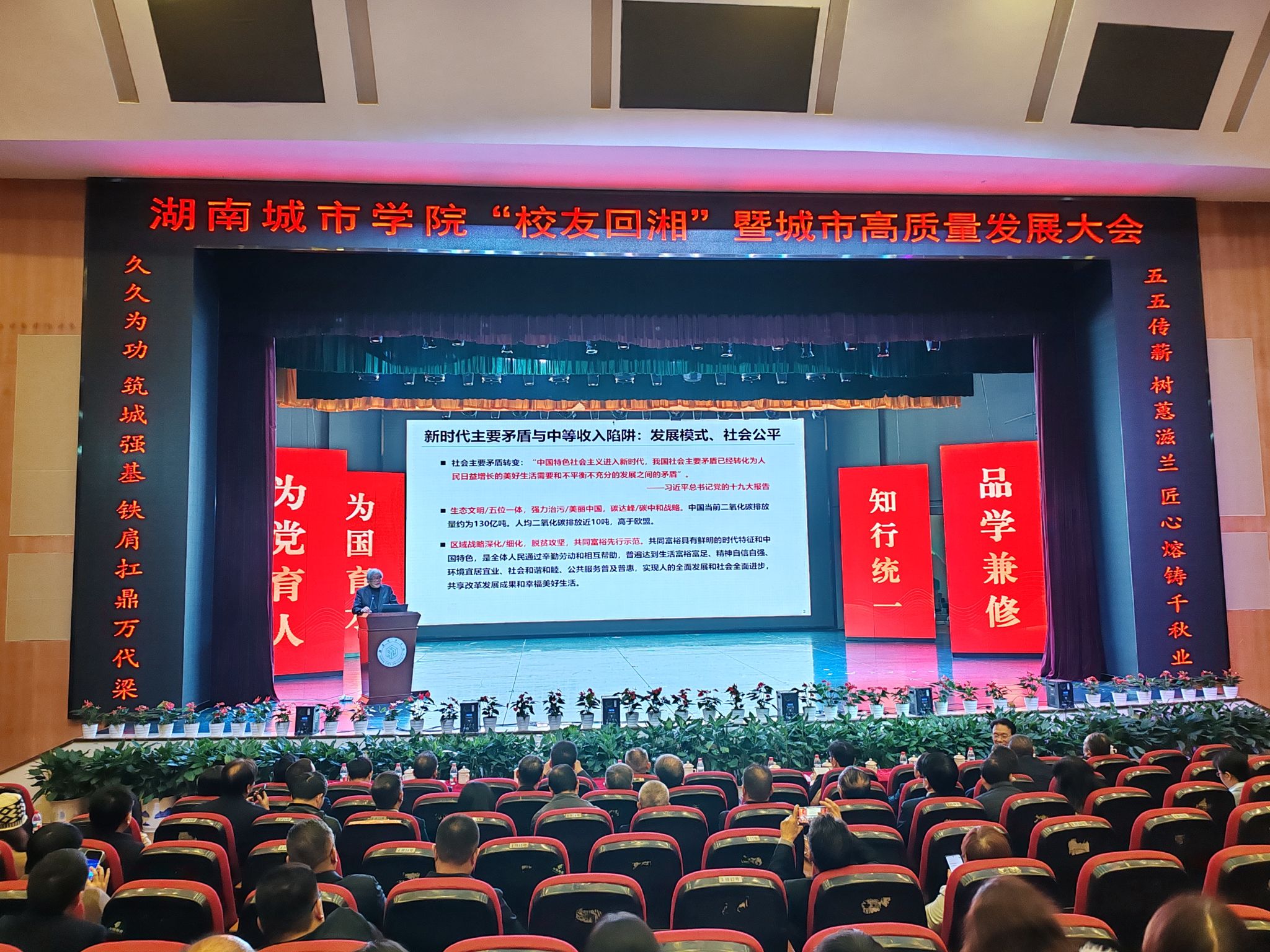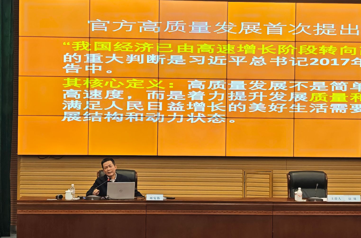 学校党委书记何振教授以“推进湖南城市高质量发展研究”为题,从“深刻领会习近平总书记考察湖南关于城市工作的重要论述和指示精神”“湖南城市发展的现状与问题”“推进湖南城市高质量发展的对策”三方面讲述了推进湖南城市高质量发展的实践方案。