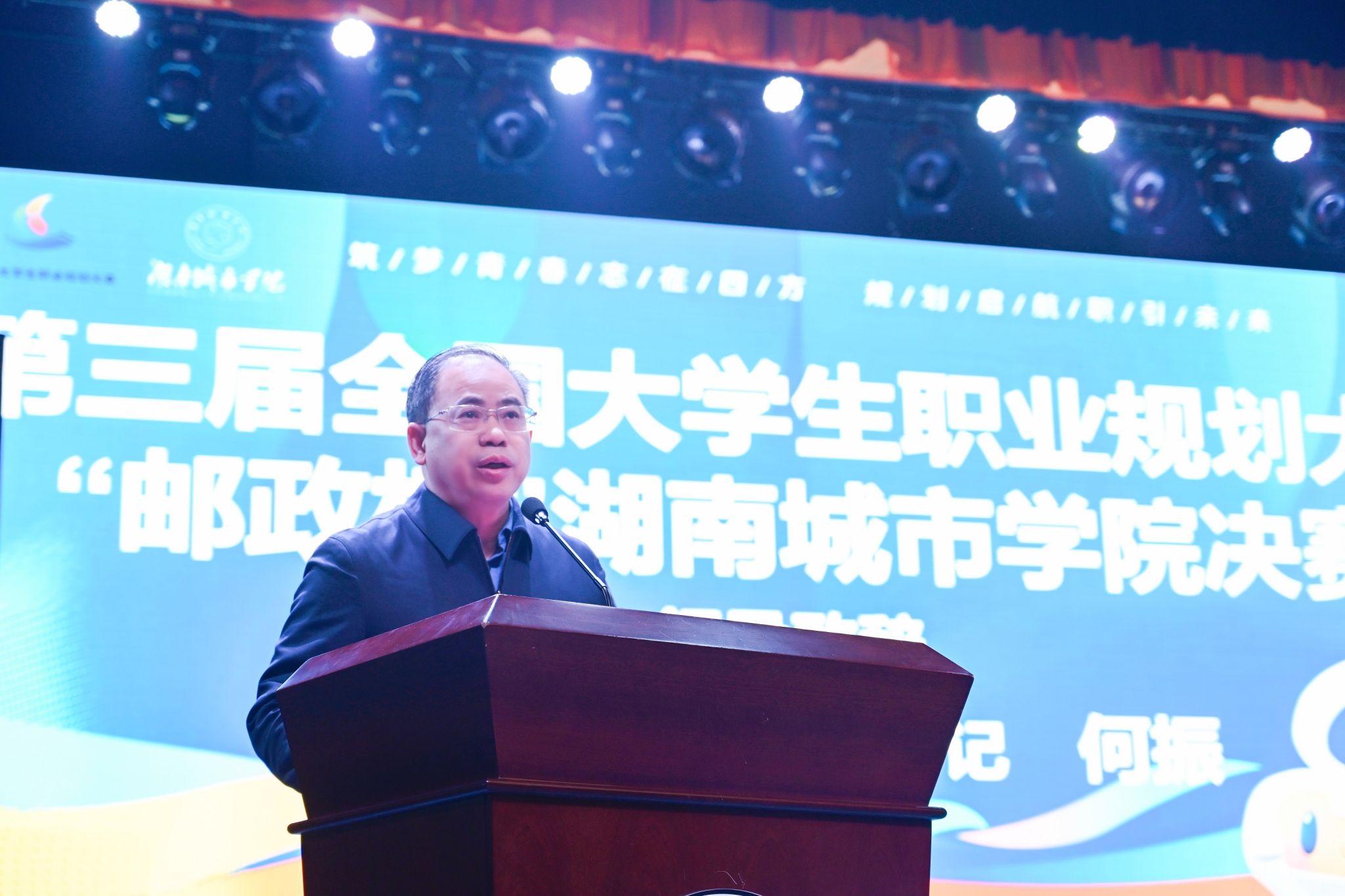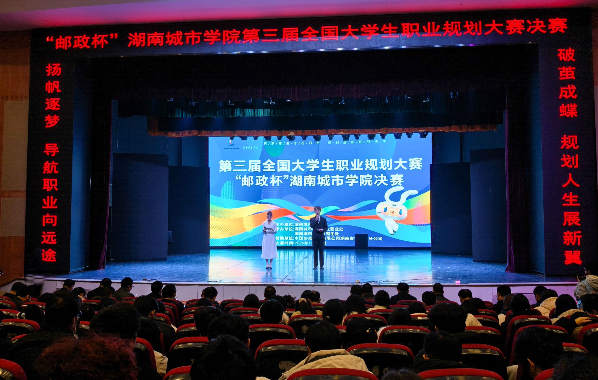 本网讯(通讯员 郭 静 郭姝君)12月12日下午,“邮政杯”九游官方端入口第三届大学生职业规划大赛决赛在音乐厅举行。校党委书记何振、副校长孙倩,中国邮政集团有限公司湖南省益阳市分公司副总经理杨旭东出席决赛。