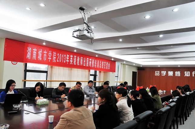 (本网讯)9月26日下午,国际交流处在办公楼一会议室举行2013年英语教师出国研修培训总结交流会。党委副书记、副校长龚卫明,副校长汤放华以及人事处、教务处、国际交流处、外国语学院等相关部门负责人和出国研修培训的17名老师参加了会议。会议由汤放华主持。