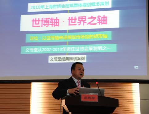 文博先生阐述了什么是城市营销,指出城市营销应包括城市定位、城市包装、城市策划、城市推广四个步骤。并对文氏城市(项目)定位与营销定律进行了解读:相关性+原创性+震撼性=营销“力”。结合“文氏定律”,他与在座师生分享了文博及文博堂团队自2002年以来所创造的诸多城市定位与营销经典案例,如山东:好客山东;常熟:常来常熟;眉山岷江农业园:千里婵娟•三苏人家;2010年上海世博会建筑群体规划概念策划:世博轴,世界之轴……讲座中,文博先生用讲故事的形式将文博堂的经典案例娓娓道来,现场师生听得津津有味,不时爆发出热烈的掌声。