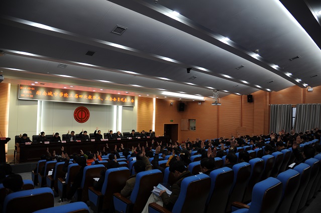 (本网讯)3月1日,我校三届四次教职工工会会员代表大会在校本部逸夫图书馆报告厅隆重举行。来自各二级学院、机关处室的正式代表181人、列席代表10人、特邀代表16人出席了会议。