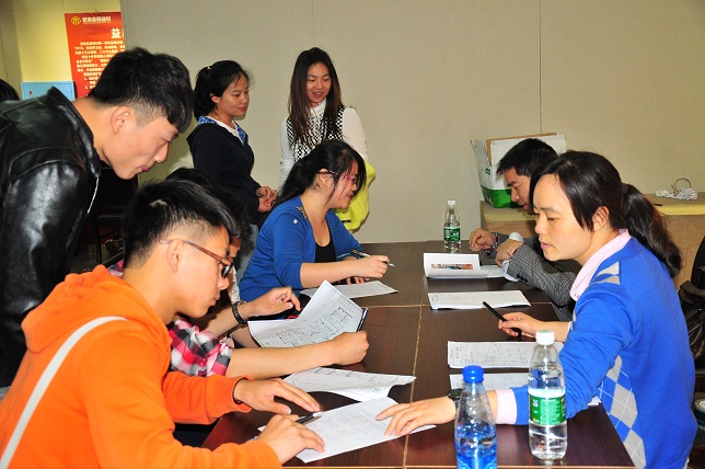 (本网讯)不用出门,在校园就能够参加招聘会。4月29日下午,苹果装饰等11家知名装饰设计公司“组团”在美艺楼108教室举办了针对美术与艺术设计学院学生的专场招聘会。