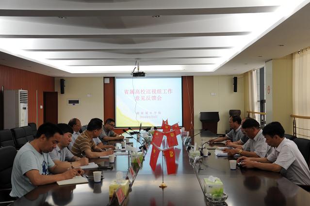 省委教育纪工委副书记、省教育厅纪检组副组长、省属高校巡视工作联络办公室副主任谭知和代表省属高校巡视工作联络组讲话。他说,巡视工作的目的是帮助学校总结经验,深入查找存在的问题,推动问题的解决,推动学校的科学发展。学校党委要按照巡视组提出的意见和建议,重视反馈意见,结合学校实际提出整改措施,认真解决问题;希望学校以巡视工作为契机,不断提高领导科学发展的能力;切实提高管理水平,抓住机遇、齐心协力,推动学校事业又好又快发展。