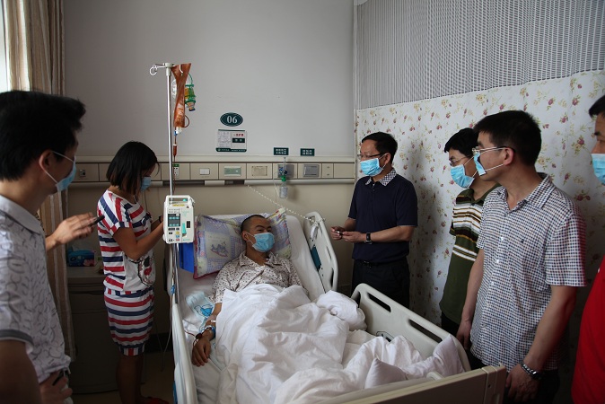 (本网讯)“感谢校长、感谢老师、感谢母校”,自信和乐观的李真和向华从九游官方端入口校长李建华教授手中接过爱心款,泪花在眼眶里闪动。7月21日上午,校长李建华来到湖南湘雅医院新大楼20楼31病室的病房里探视因患急性白血病的李真,向被网友们喻为“最美情侣”的李真和向华表达钦佩之情并给予关怀鼓励。