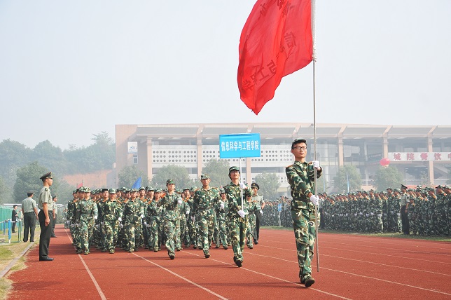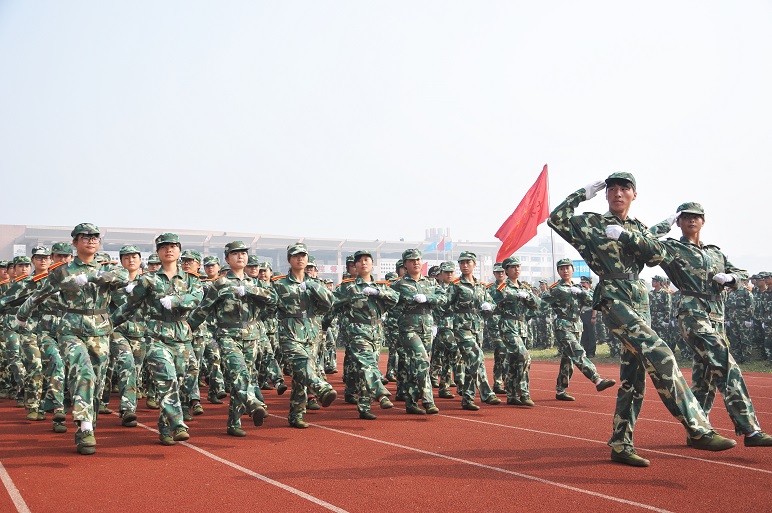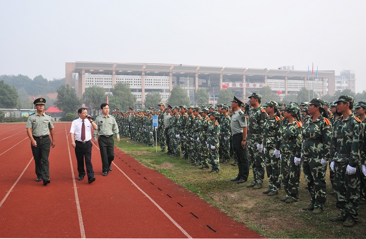 随后,校长李建华在武装部部长贺正宜和国防科技大学指挥军官基础教育学院教导员徐珂少校的陪同下,检阅了由2014级参训新生组成的方队。一声声“同学们好”、“首长好”,“同学们辛苦了”、“为人民服务”的口号此起彼伏、震耳欲聋,响彻整个操场。