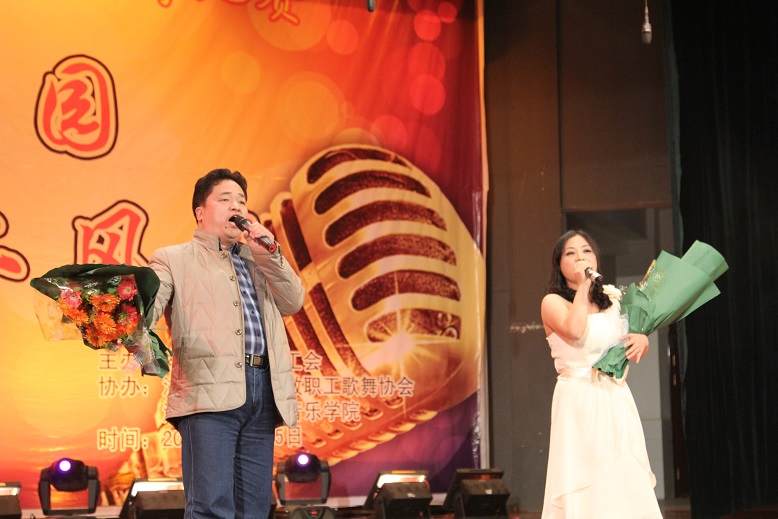 (本网讯)“创和谐校园、展教工风采”, 11月25日晚7点,随着离退休教师们的《湖南民歌联唱》盛装开场,由校工会主办,教职工歌舞协会、音乐学院协办的教职工歌咏比赛在音乐学院音乐厅拉开帷幕。各分工会精心组织节目,参赛选手们盛装打扮,倾情演出,或深情悠扬,或高亢激昂,动听的歌声不时引起现场观众如雷般的掌声。