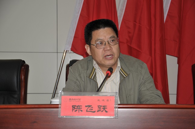 陈飞跃代表省委教育工委、省教育厅对我校2015年宣传思想工作会议的召开表示祝贺,并向全校师生致以诚挚的问候。他说,学校此次召开全校性的宣传思想工作会议来落实中央59号文件精神意义重大,充分表明学校高度重视宣传思想工作,这在全省高校中是走在前列的。