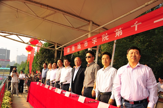 上午,我校第十二届田径运动会在田径场隆重开幕。校领导龚卫明、孟昭武、严曙光、汤放华、刘辉煌、范志超、曹太康,各机关处室、二级学院师生代表和1300多名运动员、裁判员、志愿者参加开幕式。开幕式由严曙光主持。