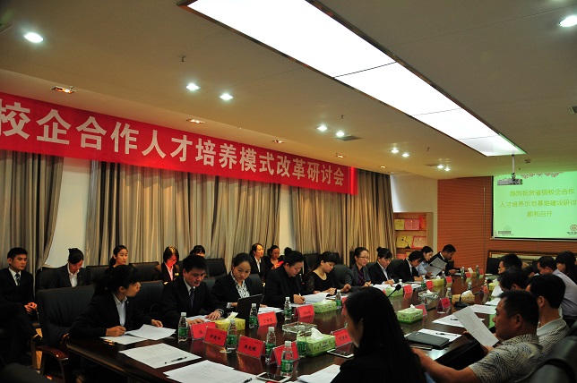 (本网讯)近日,由商学院与华天实业控股集团有限公司联合申报的省级校企合作人才培养示范基地,在我校图书馆会议室举行校企合作人才培养模式专场研讨会。党委副书记、副校长孟昭武,副校长刘辉煌以及教务处、招生就业处、商学院相关负责人,华天实业控股集团有限公司人力资源部经理黄凤、人力资源部主管王蓉以及集团下辖的华天总店、潇湘华天等八家单位的人力资源部经理和主管出席会议。