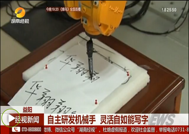 ,湖南经视新闻栏目以“自主研发机械手 灵活自如能写字”为题报道了我校与华翔翔能在校企合作方面取得的成果。这也是我校在启动《九游官方端入口服务益阳行动纲要》以来,与益阳企业在自主知识产权合作方面取得的又一突出成果。