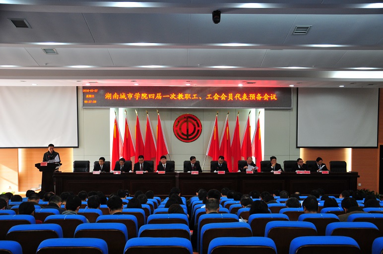 (本网讯)3月27日上午8点30分,我校第四届一次教职工、工会会员代表大会预备会议在图书馆报告厅召开。四届一次双代会正式代表、列席代表和特邀代表出席会议。副校长、工会主席郑卫民主持预备会议。