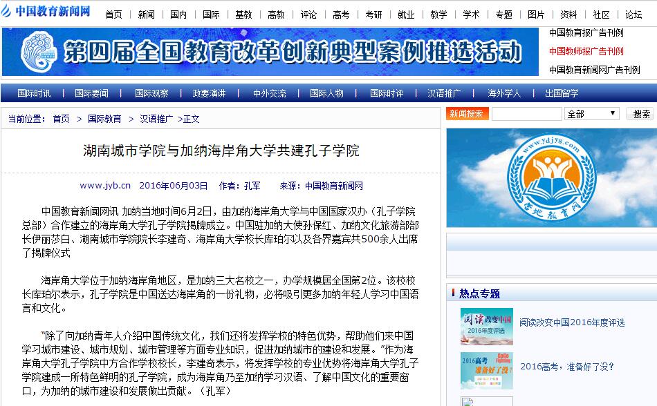 (本网讯) 加纳当地时间6月2日上午,我校与加纳海岸角大学合作创办的孔子学院正式揭幕。这也是我省二本高校首次在国外设立孔子学院,受到了中央、省内媒体以及加纳当地媒体的广泛关注。