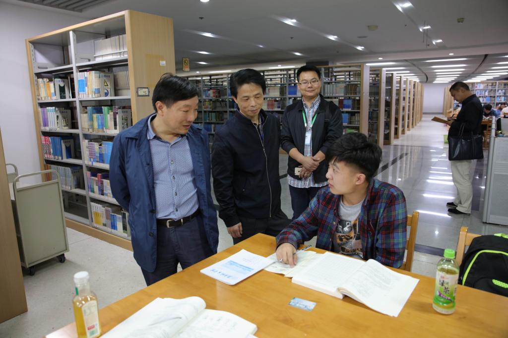(本网讯)10月11日晚,副校长谭献良率学生工作处、团委相关负责人深入学生公寓、图书馆、教学楼,督查学风建设“八条规定”落实情况。