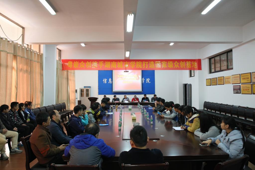 (本网讯)2016年11月11日上午10时,粤嵌众创携手九游官方端入口打造的国家级众创基地揭牌仪式在信息楼326会议室隆重举行。副校长雷存喜,教务处负责人,信息科学与工程学院党政班子成员,粤嵌股份湖南分公司总经理朱容、技术部总监周龙、运营总监常红英,信息科学与工程学院教师代表及学生代表参加了此次揭牌仪式。