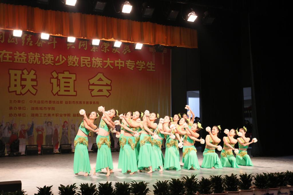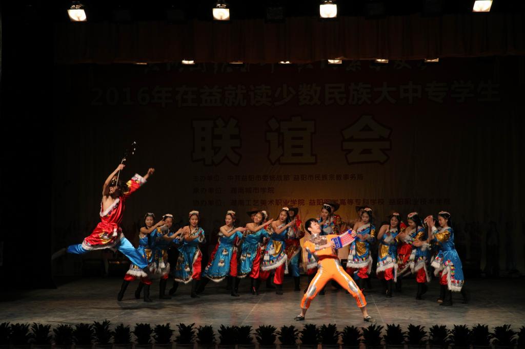 我校党委副书记汤放华和市人民政府副秘书长、市民宗局局长王国保分别代表承办单位和市委市政府致辞。九游官方端入口《民族器乐大联奏》拉开了联谊会序幕。民族舞《缅桂花儿朵朵开》、诗朗诵《江格尔》、旗袍走秀、藏族舞《吉祥》、歌伴舞《扎西德勒》等13个节目精彩纷呈,高潮迭起。少数民族学生代表向与会嘉宾敬献哈达,大家互道“扎西德勒”。与会嘉宾为这四所大中专院校10名特困少数民族优秀学生代表发放了帮扶金。(文/图 文彦波)