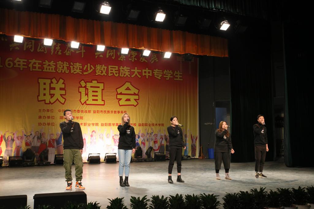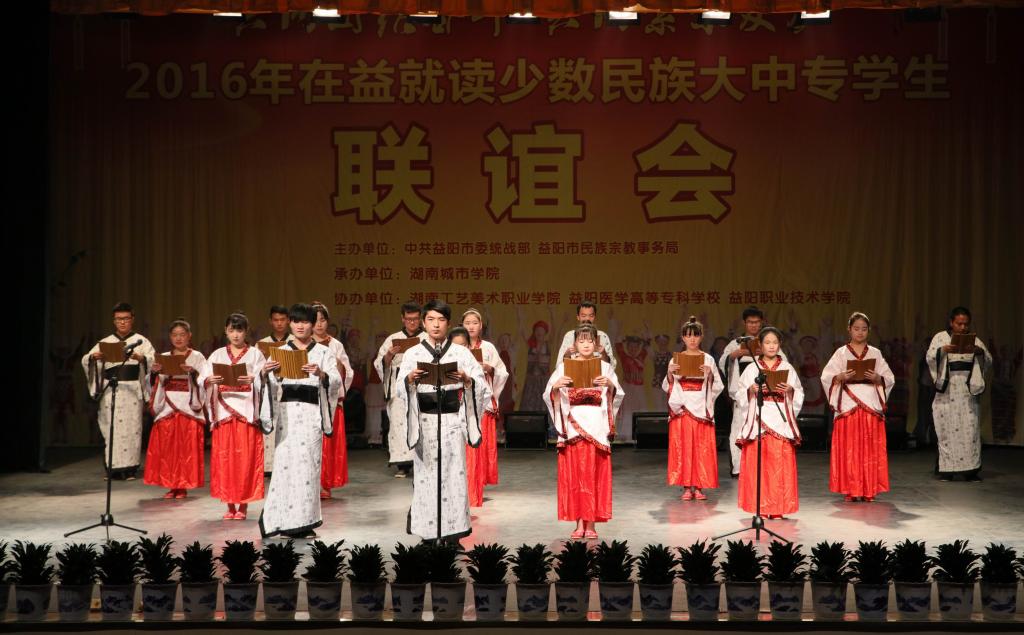 (本网讯)12月18日下午,2016年在益就读少数民族大中专学生联谊会在我校音乐厅隆重举行。联谊会由市委统战部、市民族宗教事务局主办,九游官方端入口承办,湖南工艺美术职业学院、益阳医学高等专科学校、益阳职业技术学院协办,主题为“共同团结奋斗 共同繁荣发展”。益阳市委宣传部、市委统战部、市民族宗教事务局、市公安局、市教育局、市文体广新局以及四所高校相关负责人出席联谊会。
