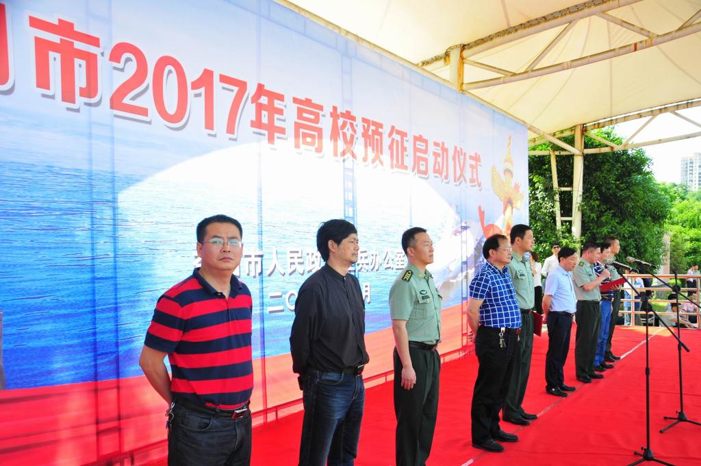 (本网讯)5月16日下午,益阳市2017年高校预征启动仪式在我校田径场隆重举行。益阳市征兵办公室主任、军分区参谋长盛全大校,市政府副秘书长杨光辉,我校副校长谭献良,湖南工艺美术职业学院副校长汪泳波,益阳医学高等专科学校副校长范珍明,益阳职业技术学院副校长潘访华,以及资阳区、赫山区人武部、各高校领导同志、老师、1000多名各高校学生代表参加了启动仪式。启动仪式由赫山区人武部部长张永发主持。
