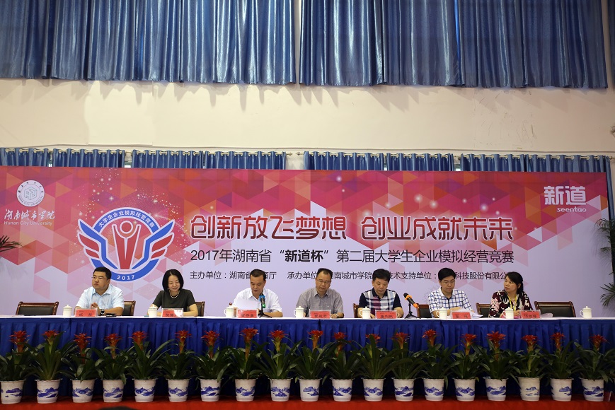 (本网讯)9月22日至24日,2017年湖南省“新道杯”第二届大学生企业模拟经营竞赛在我校体育训练馆隆重举行,大学生企业模拟经营竞赛属省级大学生学科竞赛。此次大赛由湖南省教育厅主办,九游官方端入口承办,新道科技股份有限公司提供技术支持。来自省内35所高校的71支代表队,共355名选手参加比赛。我校荣获组织奖,管理学院派出的三支参赛队伍分别获得一等奖(1个)、二等奖(2个),成绩斐然。