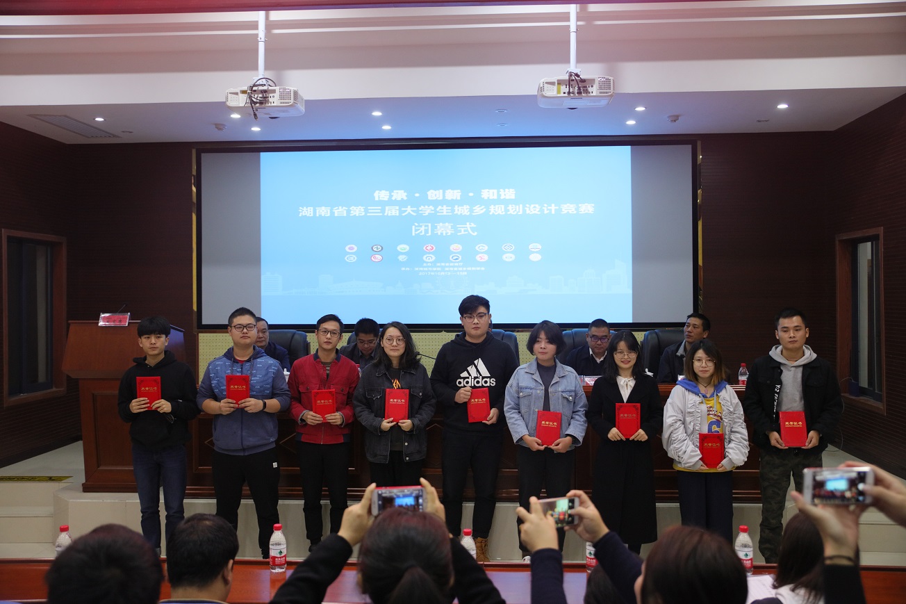 15日上午9:00,比赛举行了闭幕式。教育厅高教处处长曾力勤,副校长郑卫民、雷存喜,湖南城乡规划学会副理事长、长沙市规划设计院副院长谭春华,省教育厅高教处副处长张平出席会议并为获奖选手颁奖。