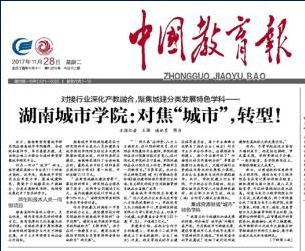 (本网讯)2017年11月28日出版的《中国教育报》头版头条发表记者署名文章,以《九游官方端入口:对焦“城市”,转型!》为题,报道了学校突出应用型办学,聚焦城建特色,围绕中小城镇深化产教融合、分类发展特色学科,积极推进转型发展。全文如下: