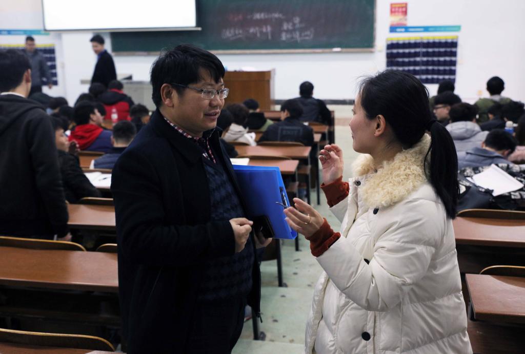 罗成翼课后与任课教师交流