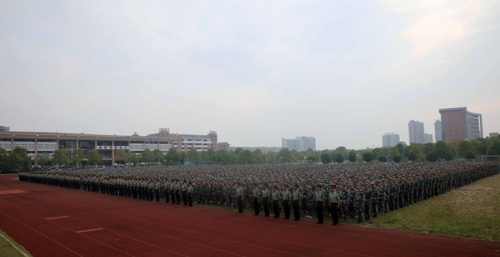 (本网讯)2018年9月13日上午7:40,2018级新生开学典礼暨军训动员大会在学校田径场隆重举行。在家的校领导,相关处室负责人,各二级学院院长、党委(党总支)书记和副书记、新生辅导员、全体教官及2018级5000多名新生参加了典礼。典礼由党委书记罗成翼主持。