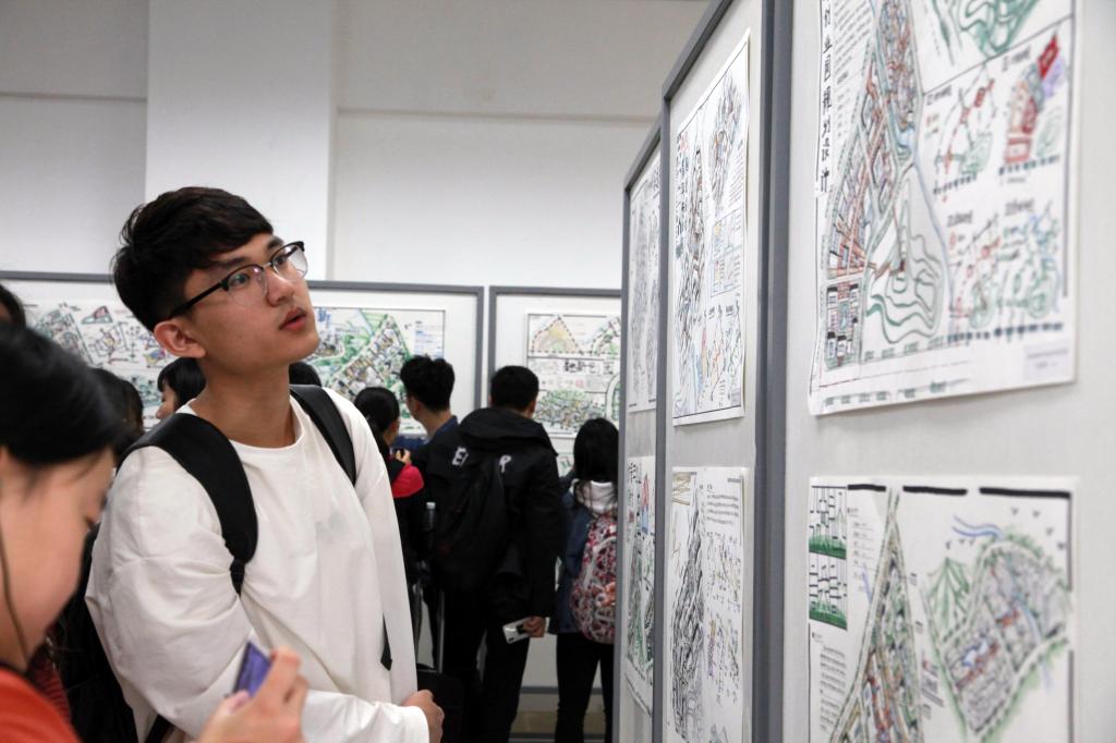 闭幕式后,与会领导、带队教师和学生一起参观了获奖作品展。(文/建规院 图/博夕)