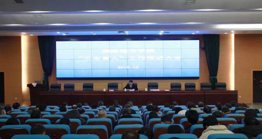 (本网讯)为进一步贯彻落实全国全省教育大会精神和全国高校思想政治工作会议精神,大力提升学校思想政治工作质量,2019年12月24日,我校“三全育人”工作推进大会在图书馆报告厅召开,学校党委书记罗成翼出席会议并讲话。会议由校长李建奇主持。