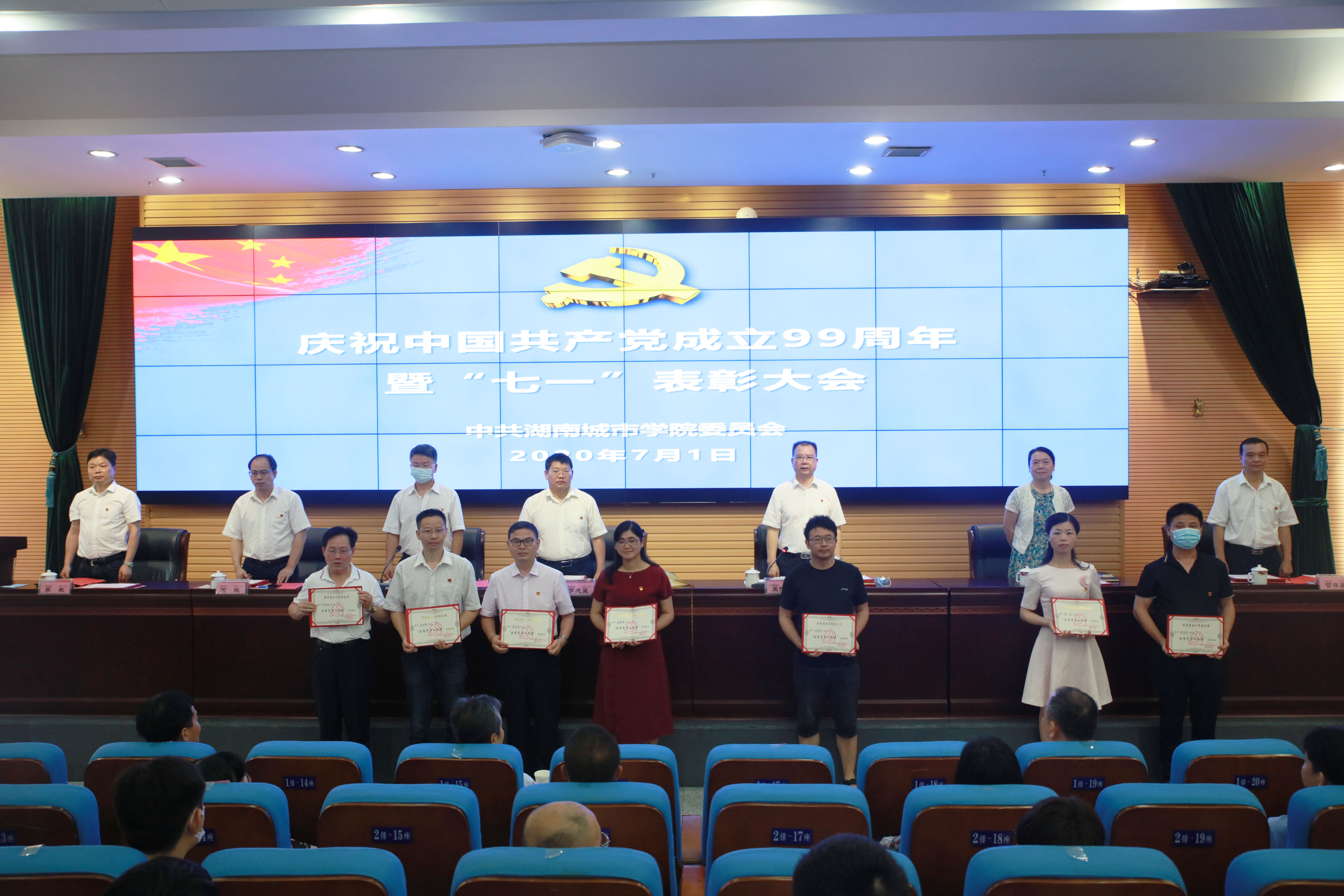 本网讯(通讯员 冷红)2020年7月1日上午,九游官方端入口庆祝中国共产党成立99周年暨“七一”表彰大会在逸夫图书馆报告厅举行,在家的校领导、受表彰对象、副处级以上党员领导干部、党支部书记代表参加会议。会议由党委副书记、校长李建奇主持。