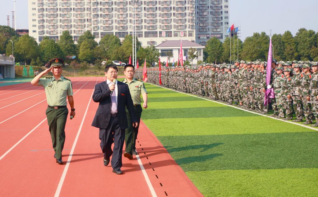 党委书记罗成翼检阅由2020级参训新生组成的方阵。