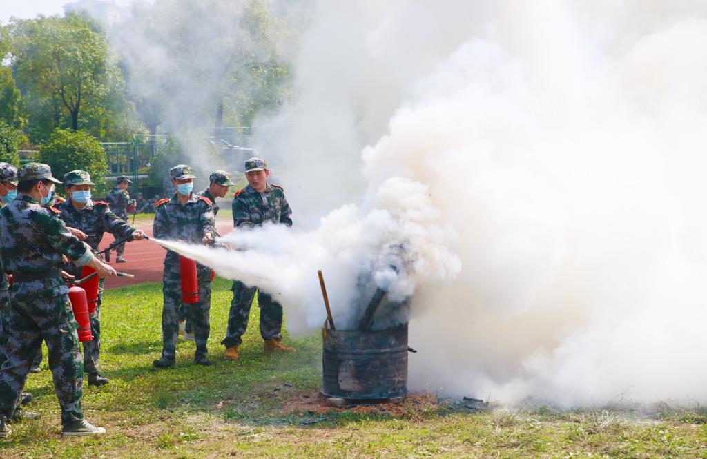 湖南省消防协会教官对新生开展消防安全知识培训。