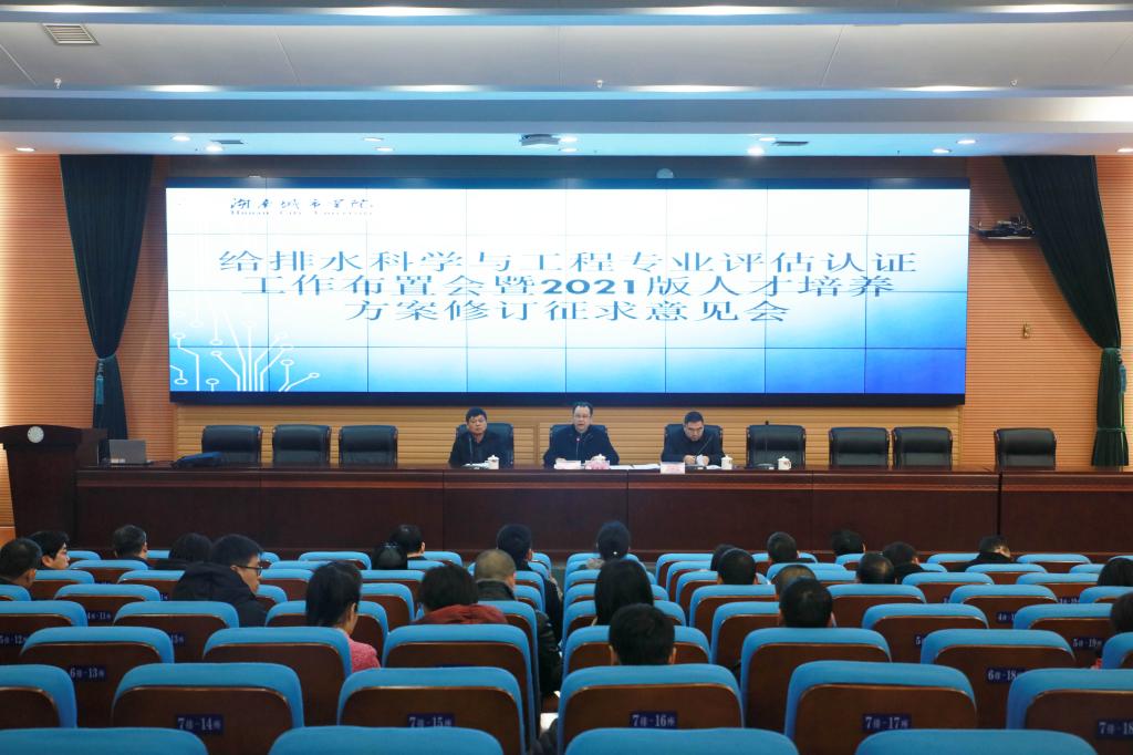本网讯  2020年12月29日上午,学校在图书馆报告厅召开专业评估认证工作布置会暨2021版人才培养方案修订征求意见会,校长李建奇、副校长郑卫民出席会议。各相关处室负责人,各二级学院院长、分管教学的副院长、给排水科学与工程专业的任课教师及全体教学督导参会。会议由李建奇主持。
