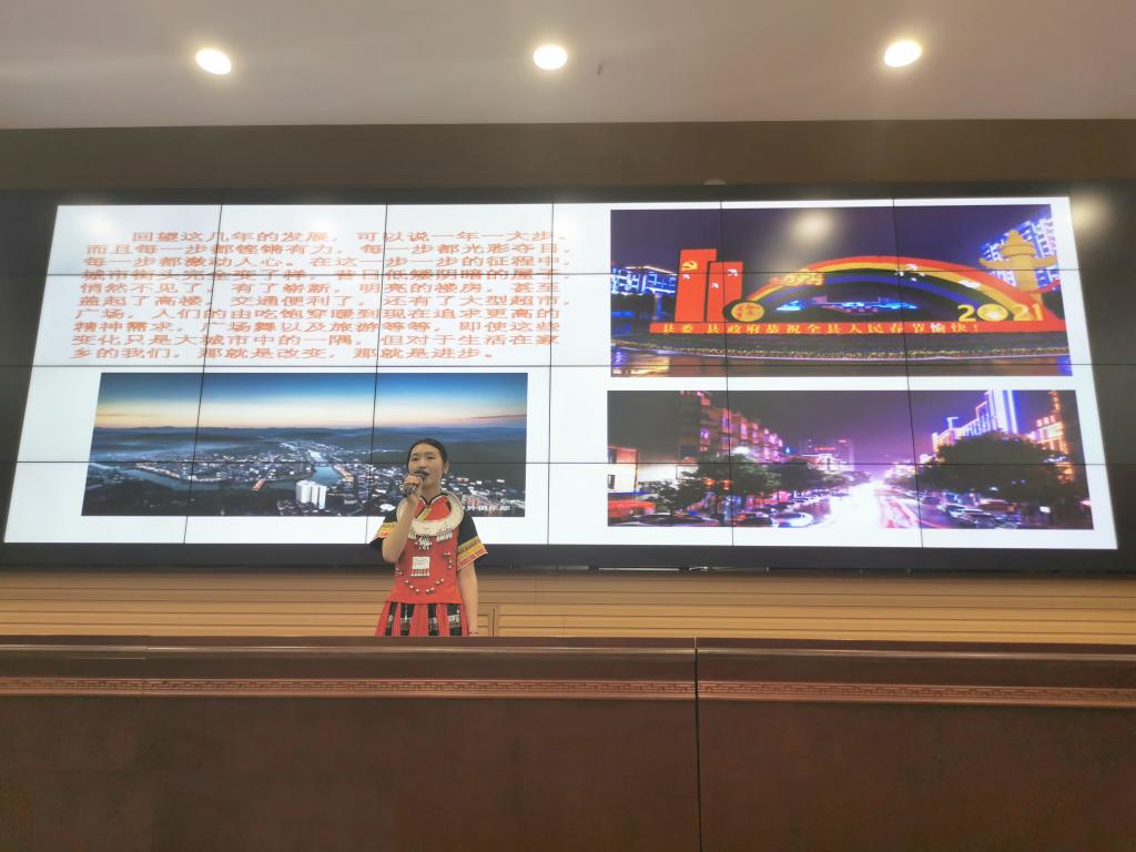 比赛中,来自苗族、土家族、侗族、哈萨克族、蒙古族等少数民族的13位参赛选手紧扣“建设伟大祖国·建设美丽家乡”主题,结合自身学习、生活经历和民族特色,从不同角度表达了建设伟大祖国和美丽家乡奋进历程中的精彩故事和深切感受。选手们身着民族服饰,饱含情感的演讲赢得了现场阵阵掌声。