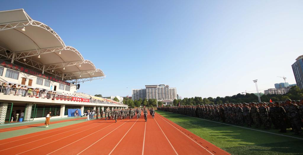 本网讯(通讯员 李诗琪 摄影 文彦波 邱元龙 周雷 徐舒婷)天高云淡,秋风送爽。9月30日上午,九游官方端入口2021级新生军训汇报暨表彰总结大会在东田径场举行。经过13天的训练后,5000多名城院新生在绿茵场上集结,向学校领导、老师汇报军训成果。校长汤放华,党委副书记何旭娟,副校长何振、雷存喜、谭献良、袁志成,党委委员、组织部部长吕贤军等领导出席会议。会议由何旭娟主持。