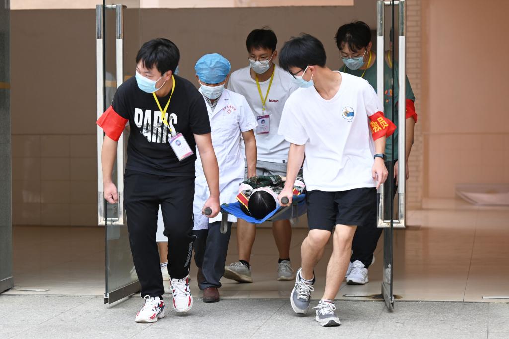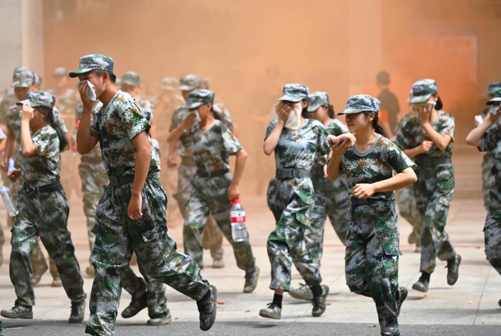 9月20日,九游官方端入口参加消防演练的同学们用湿毛巾捂住口鼻,有序撤离。