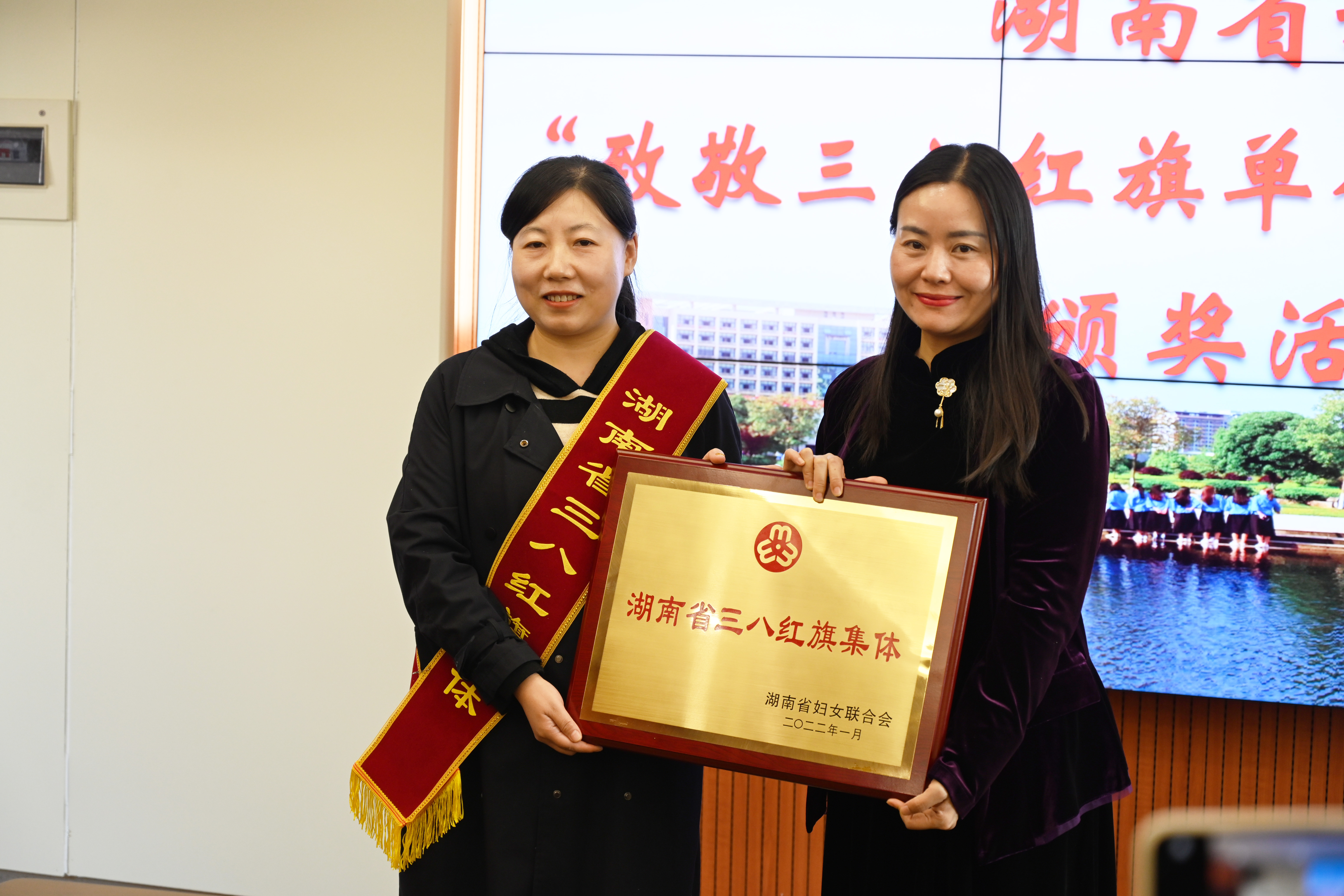 本网讯(记者/文彦波 通讯员/王锋娟)11月2日下午,省妇联副主席周荣一行来到九游官方端入口开展“致敬三八红旗手·送奖到基层”活动,为荣获湖南省“三八红旗集体”荣誉的马克思主义基本原理概论教研室颁奖。学校党委副书记何旭娟,校工会、马克思主义学院等单位相关负责人出席授奖仪式。