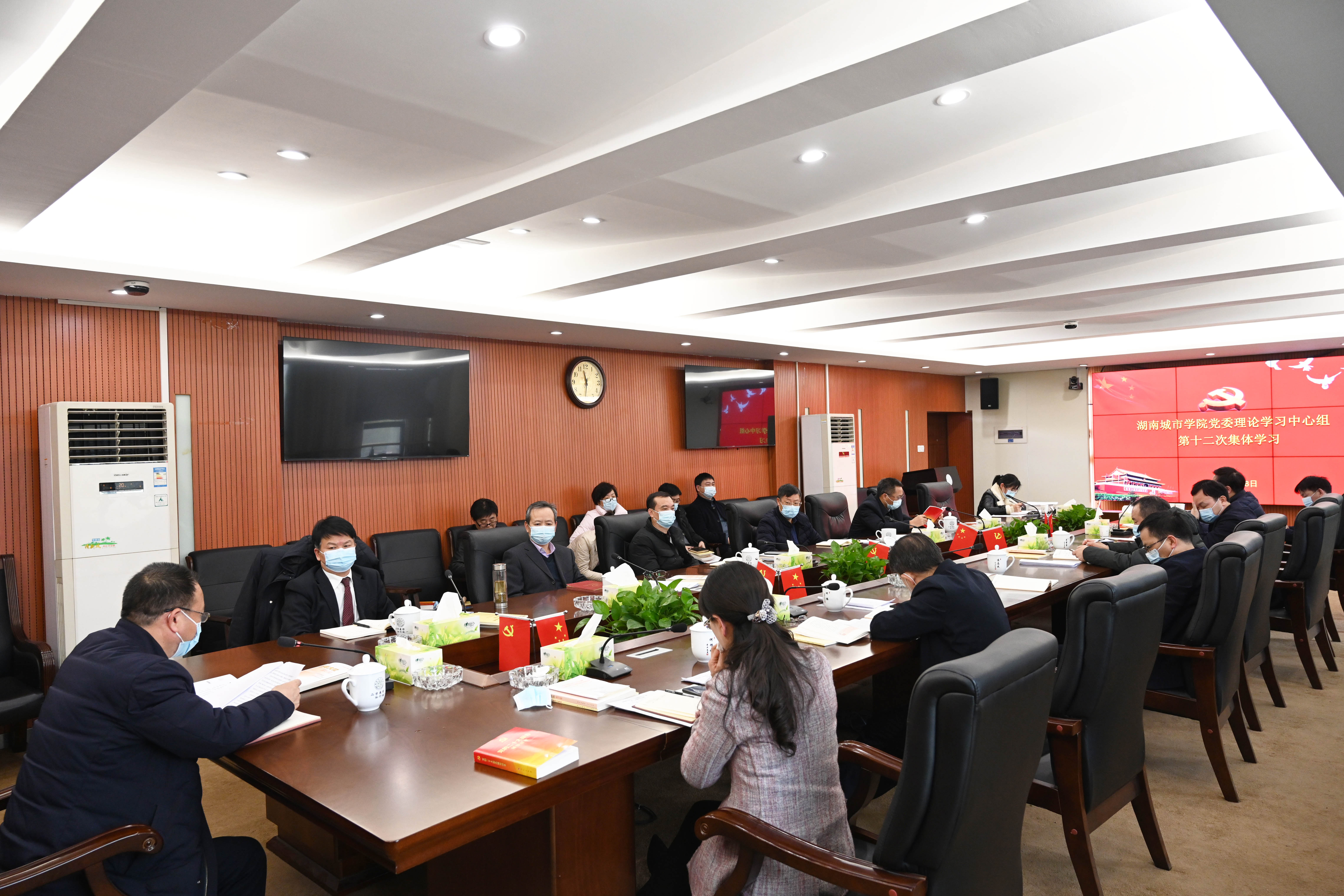 会上,校长汤放华领学《习近平在二十届中共中央政治局第一次集体学习时的讲话》,党委副书记何旭娟领学《中国共产党第二十次全国代表大会关于<中国共产党章程(修正案)>的决议》,党委委员、组织部部长吕贤军领学《百年大党面对面》第一章《千秋伟业百年华章》,马克思主义学院院长夏建文领学《教育部等十部门关于印发<全面推进“大思政课”建设的工作方案>的通知》。