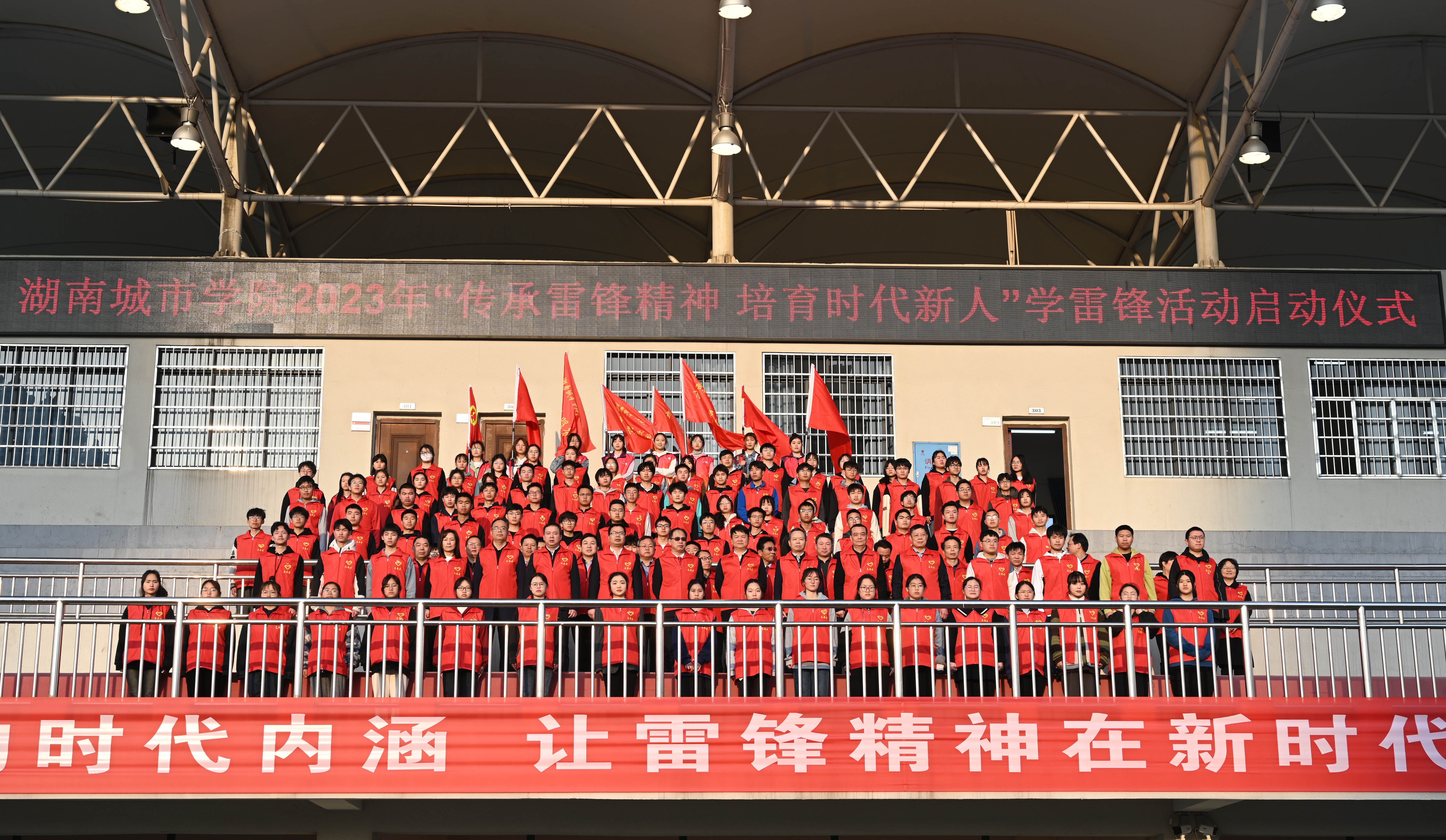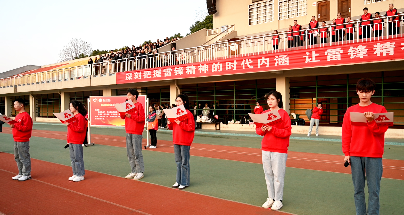 仪式在雄壮的国歌声中拉开序幕。来自教师教育学院的学生周迅作为青年志愿者代表发言。作为公费师范生,他用自己支教的经历表达了接过雷锋同志接力棒的决心——怀着建设祖国乡村教育事业的美好憧憬,志愿将学识献给乡村土地上那些含苞待放的花朵。他号召全体城院学子用实际行动继承优良传统,让雷锋精神在新时代大学生心中焕发新的青春光彩。
