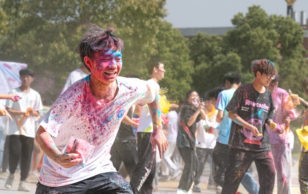开幕式后,迎来了全校师生最期待的彩虹跑活动。一千余名学生在夏宏宇及老师们的领跑下,环绕着绿荫大道,一路欢声笑语。大家相互抛洒彩虹粉,进行彩虹狂欢,头上、身上瞬间被染成五颜六色。“第一次参加这种活动,让我感觉到特别有意义。彩虹跑不仅增进了我们的友谊,也缓解了我们的心理压力!”人文学院的刘敏同学表示。