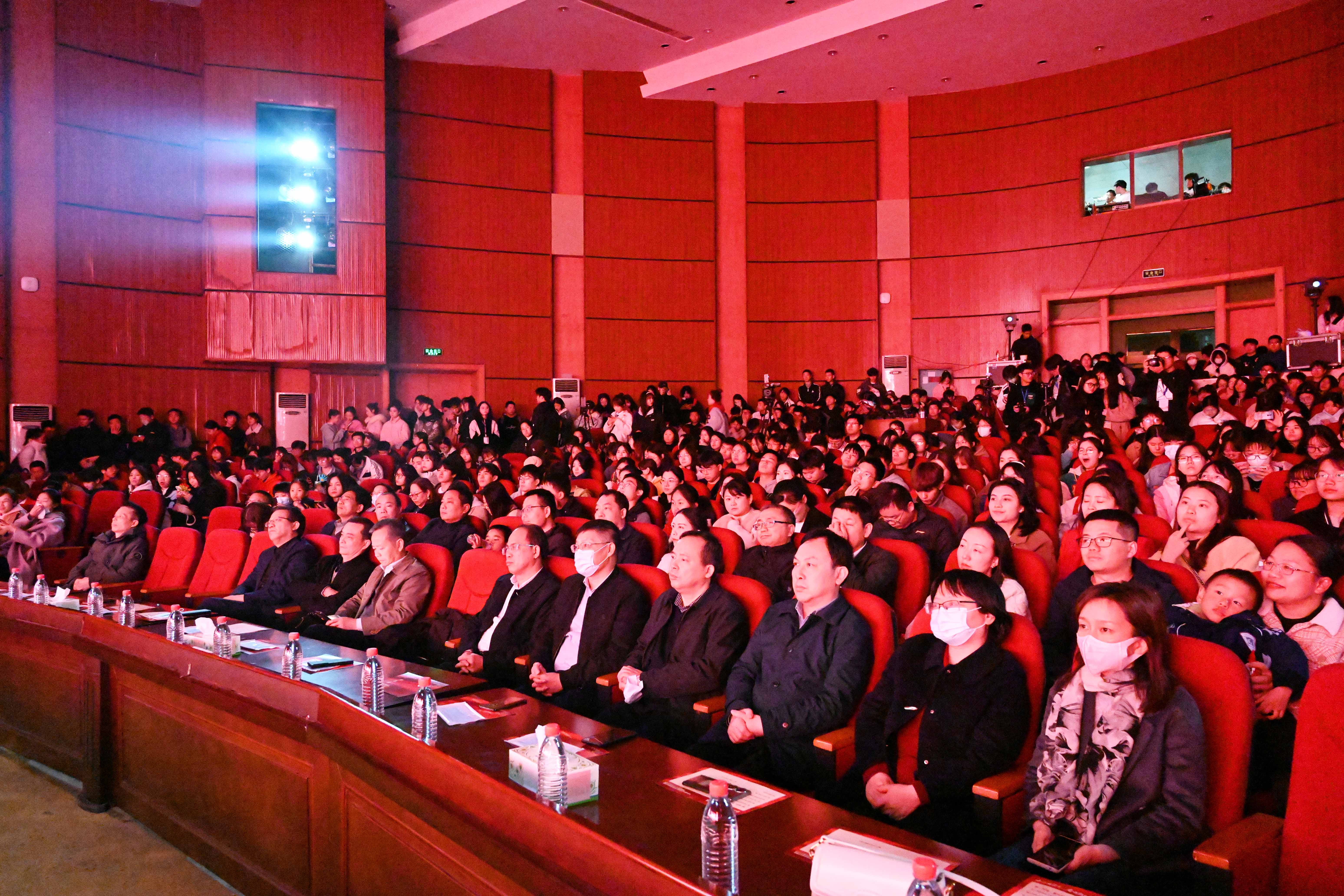 演出之前,汤放华发表讲话,向全校青年朋友们表达诚挚的问候和良好的祝愿。他表示,在全党深入开展学习贯彻习近平新时代中国特色社会主义思想主题教育之际,我们以青春的名义相聚在这里,以“沉浸式”和“场景化”的方式开展主题教育活动,引导广大城院青年真正做到以学铸魂、以学增智、以学正风、以学促干。