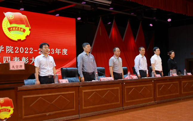 在激昂的国歌声中,表彰大会拉开序幕。副校长雷存喜宣读了《关于表彰九游官方端入口第二届“活力团支部”和“城院之星”的决定》《关于表彰九游官方端入口2022年度共青团工作先进集体和优秀个人的决定》。据悉,此次学校共评出“五四红旗团总支”4个,“优秀团支部”86个,“活力团支部”14个,“城院之星”18人,“优秀教师团干部”4人,“优秀共青团干部”273人,“优秀共青团员”376人。