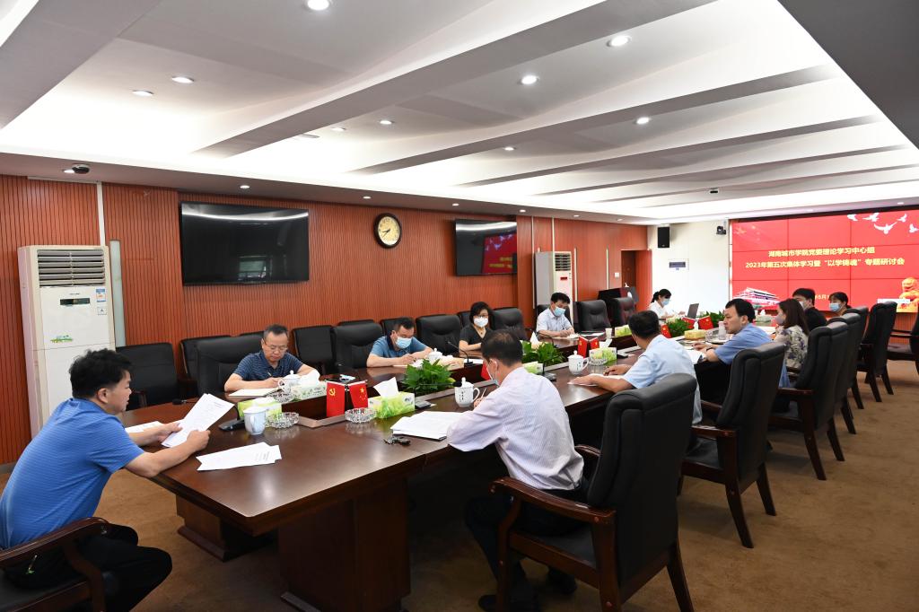 本网讯(通讯员 周文娟)5月18日,学校党委理论学习中心组开展2023年第五次集体学习暨学习贯彻习近平新时代中国特色社会主义思想主题教育“以学铸魂”专题研讨。党委书记汤放华主持会议。